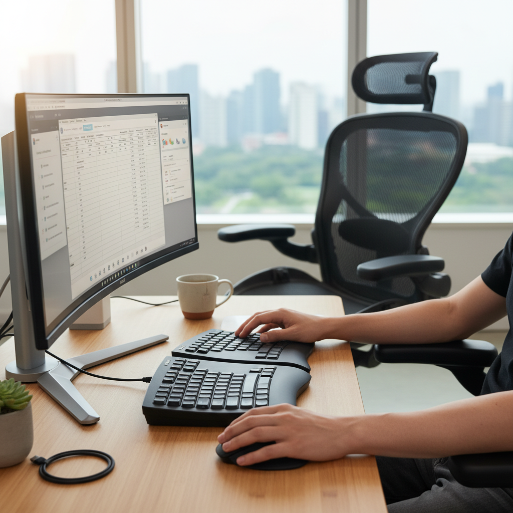 - 키보드와 마우스는 몸 가까이: 키보드와 마우스는 팔꿈치 각도가 90~100도를 유지하도록 몸 가까이에 두세요. 팔을 너무 멀리 뻗으면 어깨와 손목에 부담이 가중됩니다. 이때 손목이 꺾이지 않도록 손목 받침대 등을 활용하는 것도 좋은 방법입니다.